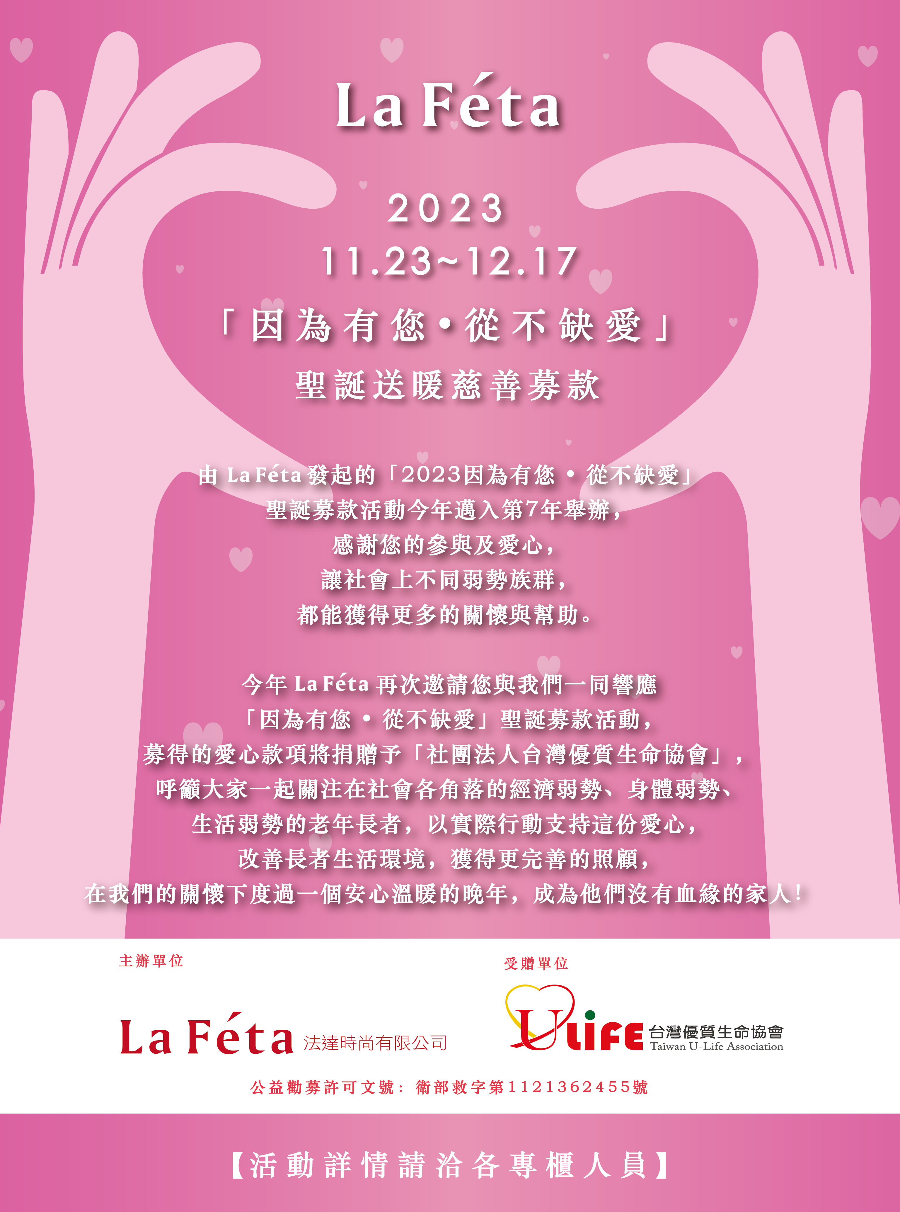 【La Féta x 台灣優質生命協會】 2023聖誕送暖 慈善募款
