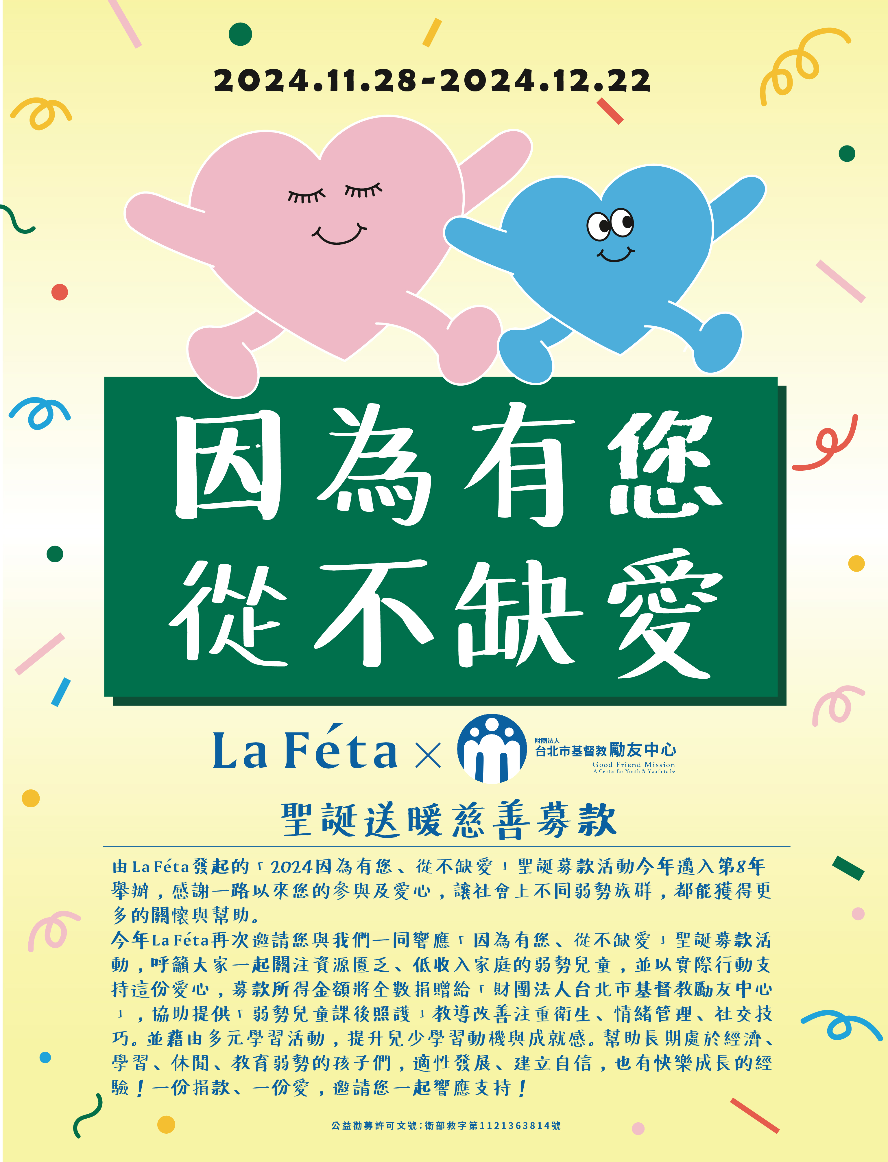 【La Féta x 台北市基督教勵友中心】 2024聖誕送暖 慈善募款