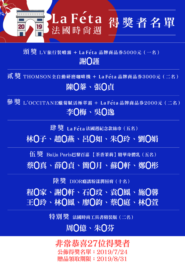 La Féta2019 法國時尚週得獎者名單