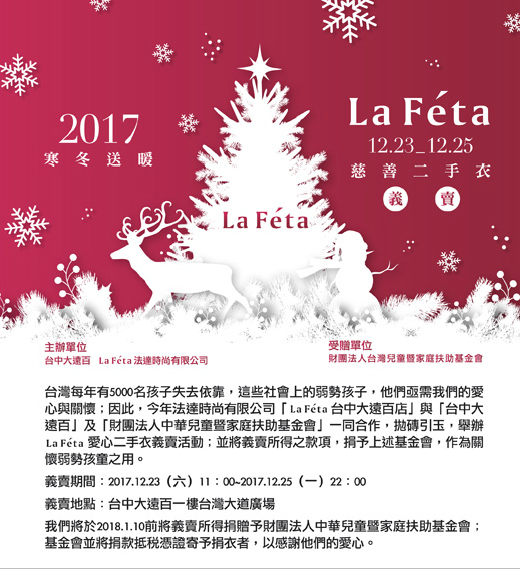 La Féta台中大遠百寒冬送暖慈善二手衣義賣