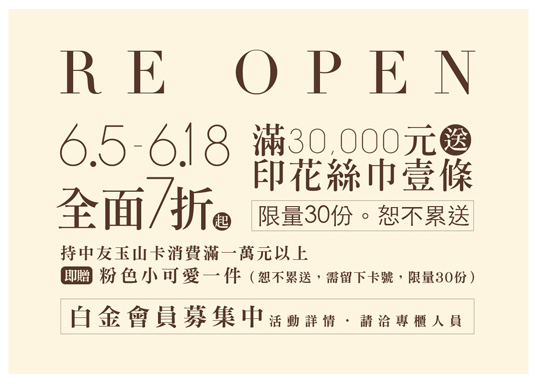 RE OPEN中友百貨2F全新開幕 全面七折