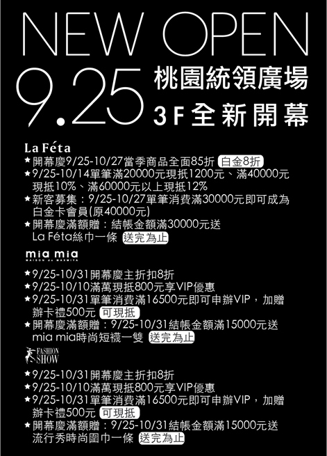 NEW OPEN 桃園統領百貨 3F全新開幕