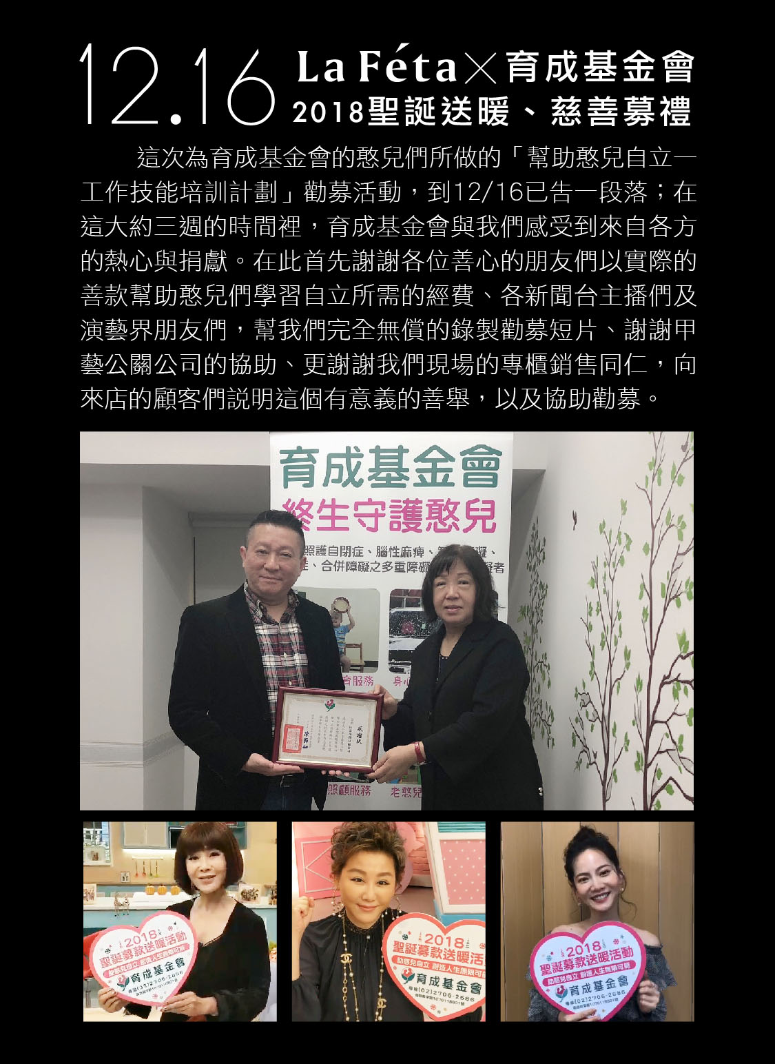 La Féta育成基金會 2018聖誕送暖 慈善募禮